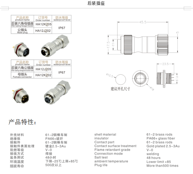HA12金屬航空防水插頭 阻燃 機械連接器