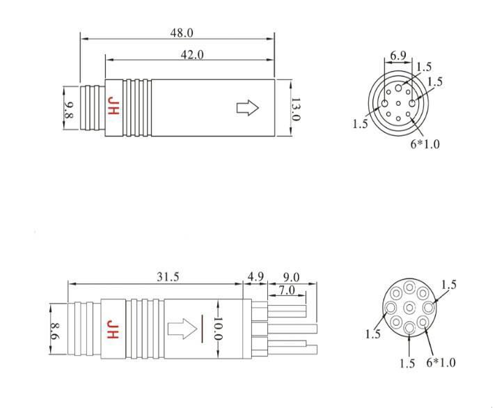 2、電線芯線為9芯(3+6)